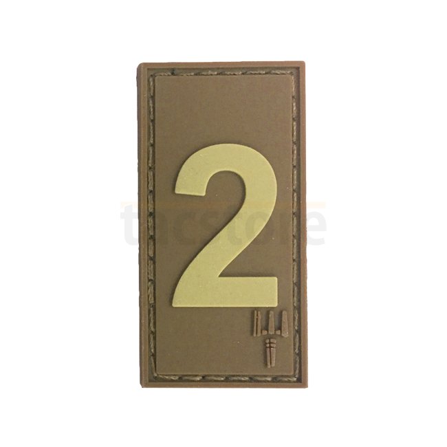 Hochwertige Mistgabel Nummer 2 Aufnäher in Tan-Farbe. Mit Klettverschluss für einfaches Anbringen. Kompakte Abmessungen von 50 x 25mm.