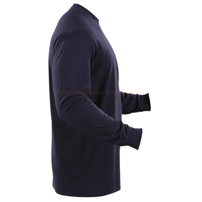 5.11 Professional Langarm-T-Shirt in Feuer-Marineblau, hergestellt aus 170g Ringgesponnenem Strick für Komfort, Haltbarkeit und Feuchtigkeitstransport. Taillierte Passform, knitterfest, ideal für Stationskleidung.