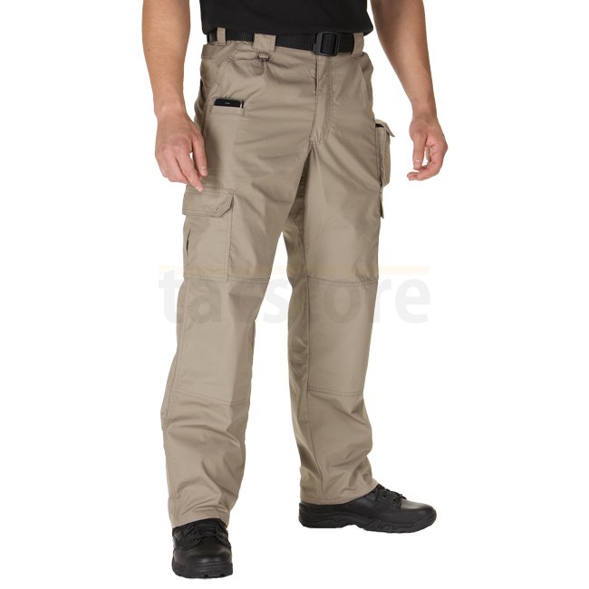 Leichte und atmungsaktive 5.11 Taclite Pro Poly-Baumwollhose in der Farbe Coyote mit einem Zwickel im Schritt für volle Bewegungsfreiheit. Zwei gefaltete Cargo-Taschen und eine Tasche für Magazine/Handys für schnellen Zugriff.