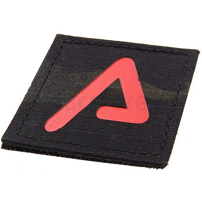Hochwertiger Agency Arms Premium Laser Cut Patch in Rot A Design auf Multicam Schwarz. Hergestellt in den USA aus Cordura 500D und Vinyl für Langlebigkeit und Stil.