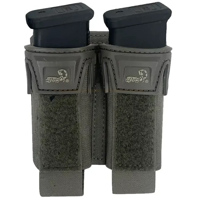 Elastische, Double Quick-Draw Pistolenmagazin Pouch mit MOLLE-Rückseite und patentiertem Trichter-Magwell-Design.
