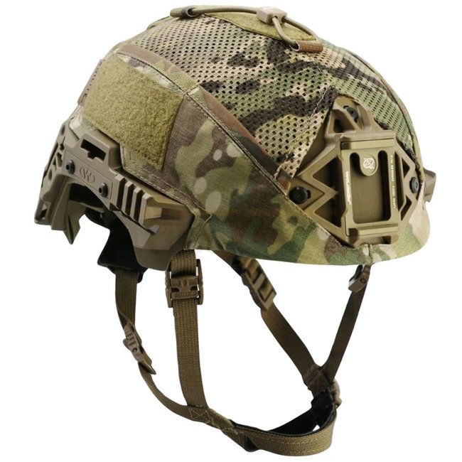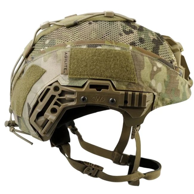 Voll integrierter Helmüberzug für Team Wendy Bump Helme, ausgestattet mit Agilite präziser Passform, hinteren Schlaufen für NVG-Batterien, Polymer-Bungee-Kanälen und Kabelmanagement. Einfach in Sekunden zu installieren, enthält universelles hinteres Fach