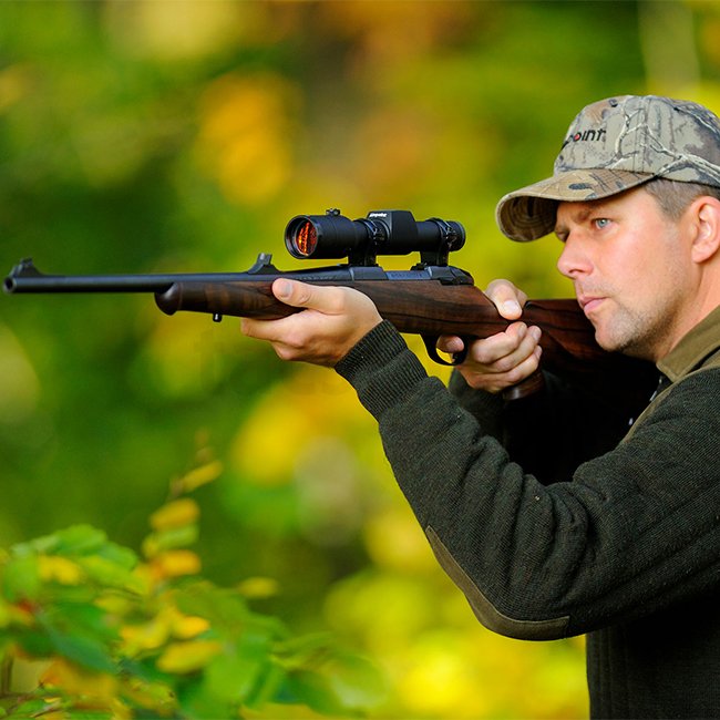 Aimpoint Hunter H30L 2 MOA Rotpunkt Reflexvisier, leichte Aluminiumkonstruktion mit 2 MOA Rotpunkt, ideal für schnelle Zielerfassung und präzises Schießen. 12 Helligkeitsstufen für den Tagesgebrauch, wasserdicht und lange Batterielaufzeit von über 5 Jahre