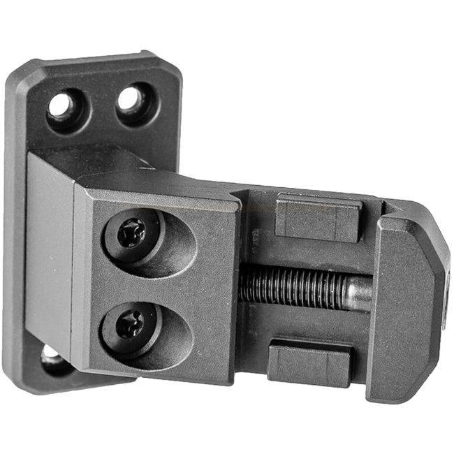 Die patentierte Arisaka Offset Optic Mount ist eine modulare Montagelösung, die es dem Benutzer ermöglicht, ohne zusätzliche Komponenten eine 35- oder 45-Grad-Offset-Position für sein Rotpunktvisier auszuwählen. Die 35-Grad-Position bringt das Leuchtpunktvisier näher an schmalere, kleinere Zielfernrohre heran, während die 45-Grad-Position zusätzlichen Freiraum um breitere Türme bietet.