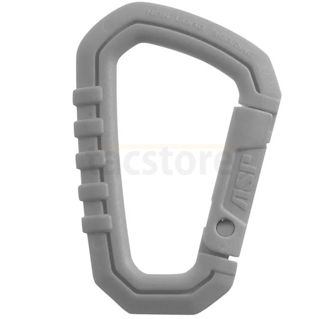 ASP Polymerkarabiner in grauer Farbe - geeignet für verschiedene Outdoor-Aktivitäten mit einer maximalen Tragfähigkeit von 125 kg. Nicht für Klettern/Rettereinsätze geeignet.