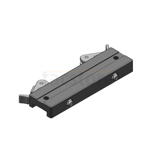 B&T QD Base Mount – Lang. Leichtes und langlebiges Montagegerät in schwarzer Farbe, mit einer maximalen Höhe von 14,3 mm, Länge von 128 mm und NATO-Zubehörschiene. Hergestellt aus Aluminium und Stahl, behandelt mit Hartcoat eloxiert & QPQ. Teilenummer BT-