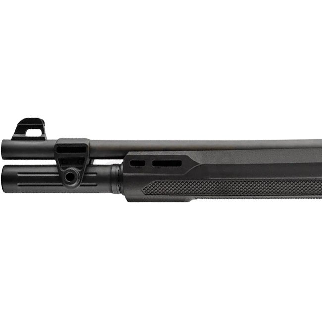Die Laufklemme verfügt über integrierte M-Lok-Schlitze und eine QD-Buchse, die das 7+1-Schuss erweiterte Magazinsrohr sichert.