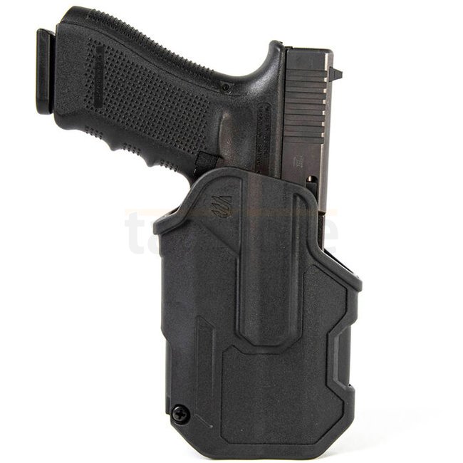 Das BLACKHAWK T-Series L2C Verdeckungsholster ist für Glock 17/19/22/23/31/32/45/47 TLR7/8 Handfeuerwaffen entworfen und verfügt über eine sichere Links-Ziehen in schwarzer Farbe.