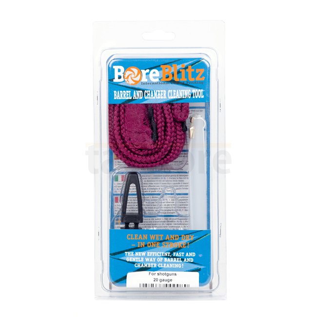 Die BoreBlitz-Laufreinigungsschnur reinigt schnell und effizient, indem sie einfach durch den Lauf der Waffe gezogen wird. Das Rohrinnere wird dabei gleichzeitig eingeölt. Um den BoreBlitz durch das Rohr zu ziehen, muss das Messinggewicht von der Patronenseite her eingeführt und am Ende des Laufes mit Hilfe des beigelegten Griffes durchgezogen werden.