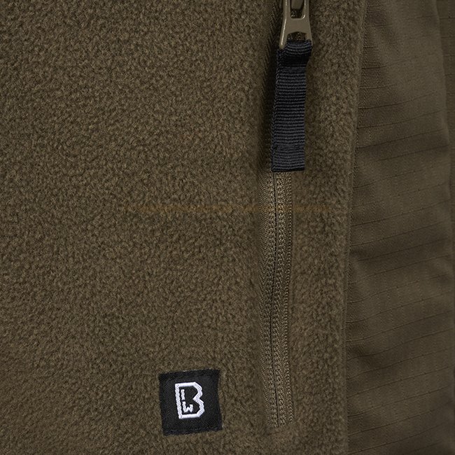 Brandit Fleecejacke Ripstop - Olive - S: Warme und funktionale Fleecejacke aus wasserabweisendem Ripstop-Material, mit mehreren Taschen und verstellbaren Funktionen für eine bequeme Passform. Ideal für Aktivitäten im Freien. Außenmaterial 1: 100% Polyeste