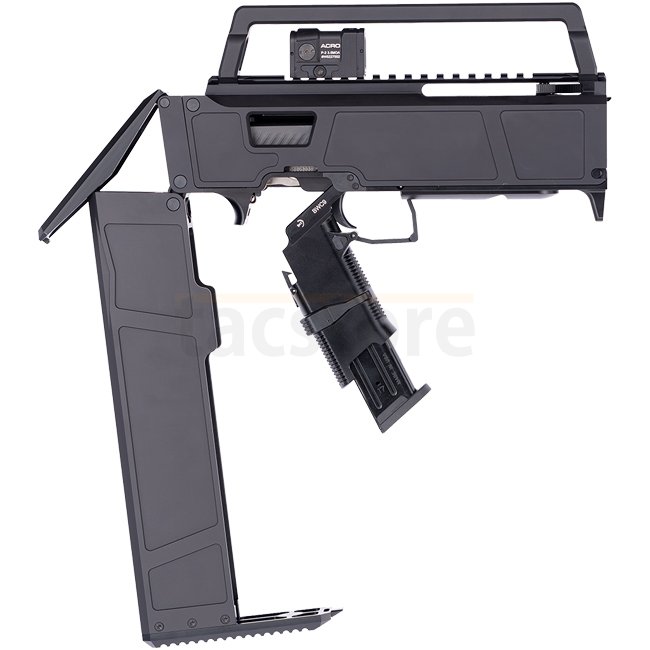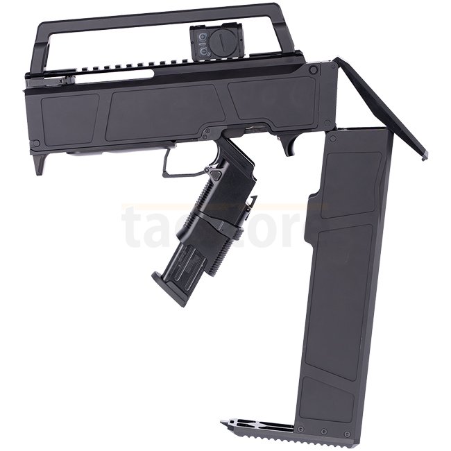 Das B&T BWC9-320 Klapp-Chassis-Kit verwandelt die SIG Sauer P320 Pistole oder das FCU in eine kompakte und vielseitige Plattform. Mit dem innovativen Klappsystem lässt sich die Waffe unauffällig tragen und in Sekunden einsatzbereit machen. Im Lieferumfang enthalten sind ein Aimpoint ACRO Visier sowie ein Bedienungs- und ein Sicherheitsmanual.