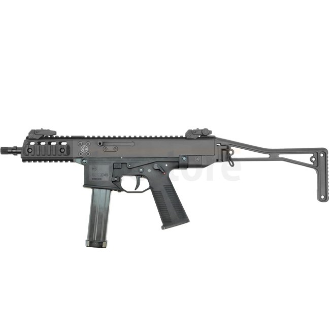 Der B&T GHM45 Selbstlade-Karabiner ist eine kompakte und zuverlässige Waffe im Kaliber .45 ACP. Mit einem 175mm Lauf, klappbarer Schulterstütze und seitlich wechselbarem, repetierendem Spannhebel verbindet er Schweizer Präzision mit robuster Bauweise. Dank 3-Lug Schnittstelle für Schalldämpfer ist er modern anpassbar und dennoch leicht und führig.