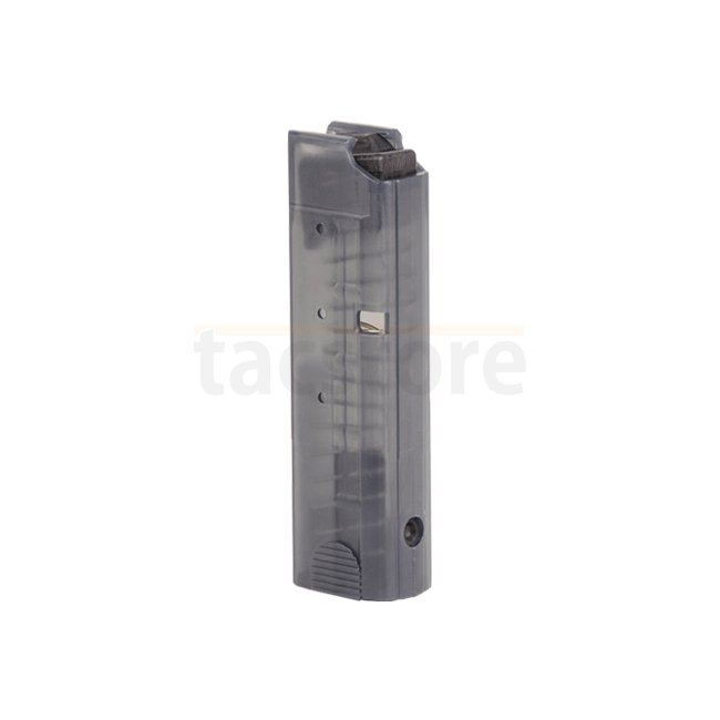 Das B&T Kapazitätsreduzierte Magazin basiert auf dem 15-Schuss Polymergehäuse, ist jedoch dauerhaft auf 5 Schuss begrenzt. Entwickelt für MP9, TP9, APC9 und GHM9, behält es die kompakte Handhabung des 15-Schuss Designs bei und erfüllt die strengen gesetzlichen Kapazitätsvorgaben. Der transluzente Polymerkörper ermöglicht eine schnelle Kontrolle der verbleibenden Patronen.