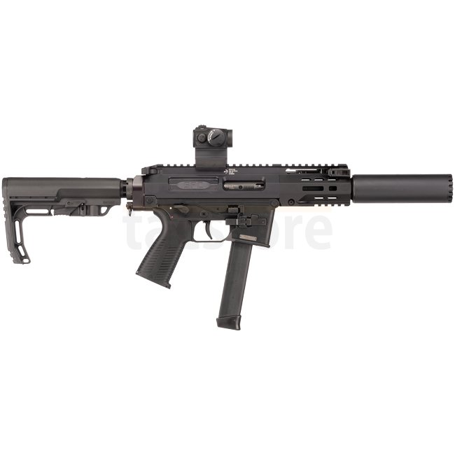 Der B&T SPC9 SD G ist ein hochmoderner halbautomatischer Karabiner, entwickelt für Präzision und Zuverlässigkeit in 9x19 mm Para. Mit integriertem Schalldämpfer vereint er eine kompakte Bauweise und Leistung für vielseitige Einsätze.