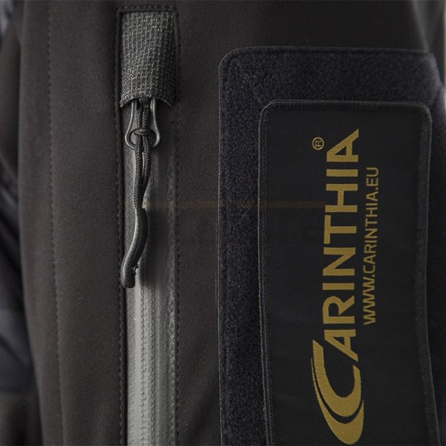 Die Carinthia ISG 2.0 Jacke in Schwarz XL ist eine vielseitige isolierte Jacke mit einer einzigartigen Kombination aus Softshell-Obermaterial und G-LOFT®-Isolierung, die außergewöhnliche Wärmeisolierung, wasserabweisende Eigenschaften und Atmungsaktivität