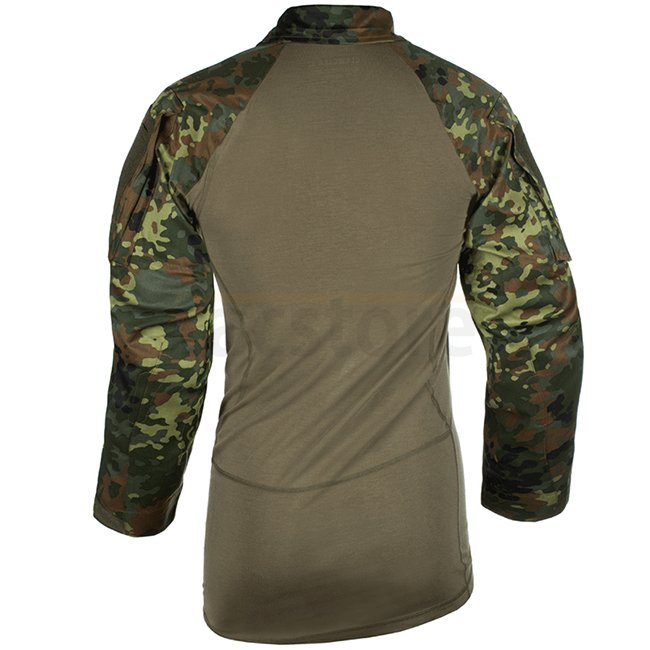 Dieses speziell für eine Verwendung in Kombination mit ballistischen Schutzwesten geschneiderte Combat Shirt hat einen sehr körperbetonten Schnitt, welcher für einen hohen Tragekomfort sorgt. Der Schulterbereich wurde nahtfrei gestaltet, wodurch beim Tragen von Rucksäcken, Plattenträgern und Chest Rigs keine unangenehmen Druckstellen entstehen können. Die Ärmel und Oberarmtaschen wurden komplett neu konstruiert und verfügen über ein an die Körperkonturen angepasstes ergonomisches Design für besseren Tragekomfort und Mobilität.