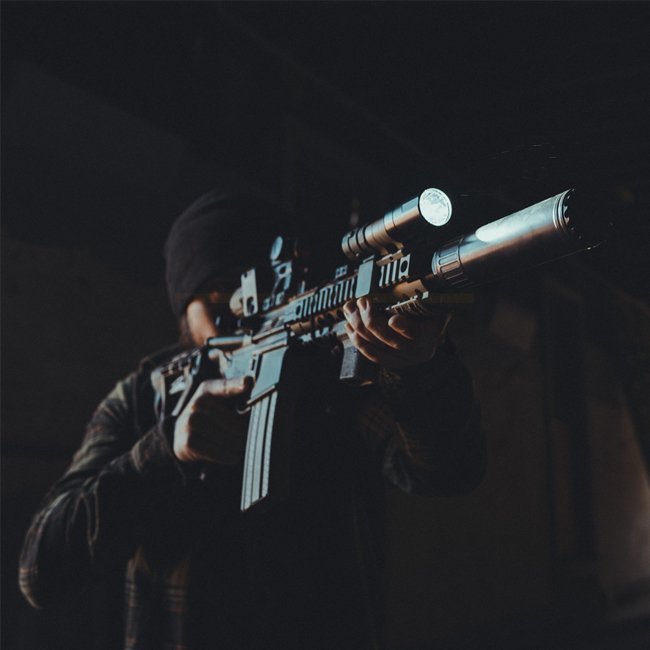 Das Cloud Defensive REIN 3.0 Waffenlicht Komplettset M-LOK in Schwarz bietet 1250 Lumen Helligkeit und 65 Minuten Laufzeit. Es ist Dual Fuel fähig, kompatibel mit vorhandenen Scout Light Halterungen und wird mit einem 18650 Akku und Nitecore Ladegerät gel