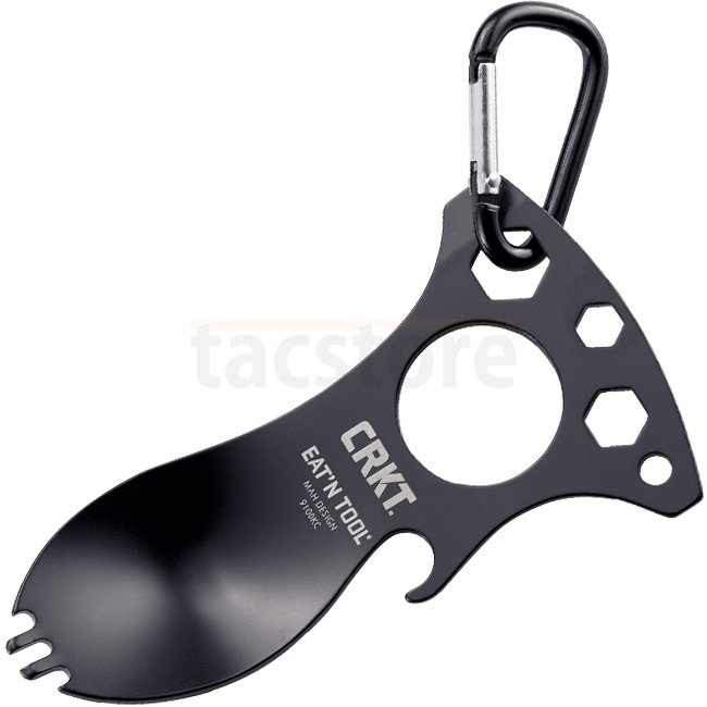 Dieses vielseitige CRKT Eat N Tool in elegantem Schwarz ist ein Muss für Outdoor-Enthusiasten. Es fungiert als Löffel, Gabel, Flaschenöffner und Schra screwdriver, was es zu einem praktischen Werkzeug für das Essen unterwegs und kleine Reparaturen macht.