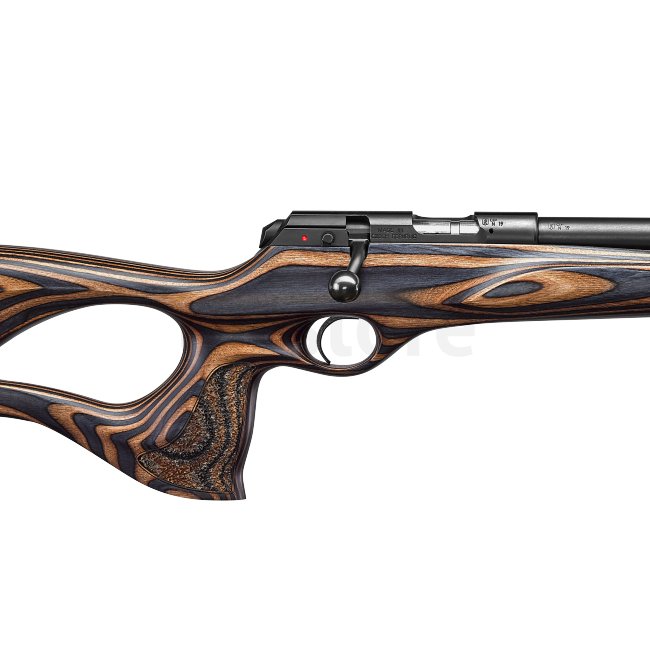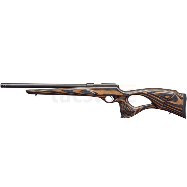 Die CZ 457 Thumbhole 412,5mm .22 LR - Schwarz ist eine präzise Repetierbüchse, die für Jagd, Sportschießen und Training entwickelt wurde. Ihr ergonomischer Daumenloch-Schaft aus hochfestem, grau-braunem laminiertem Holz bietet hervorragende Stabilität und Kontrolle, was die Schussgenauigkeit erhöht. Der 412,5mm kaltgehämmerte schwere Lauf sorgt für gleichbleibende Leistung und macht sie ideal für anspruchsvolle Schützen.