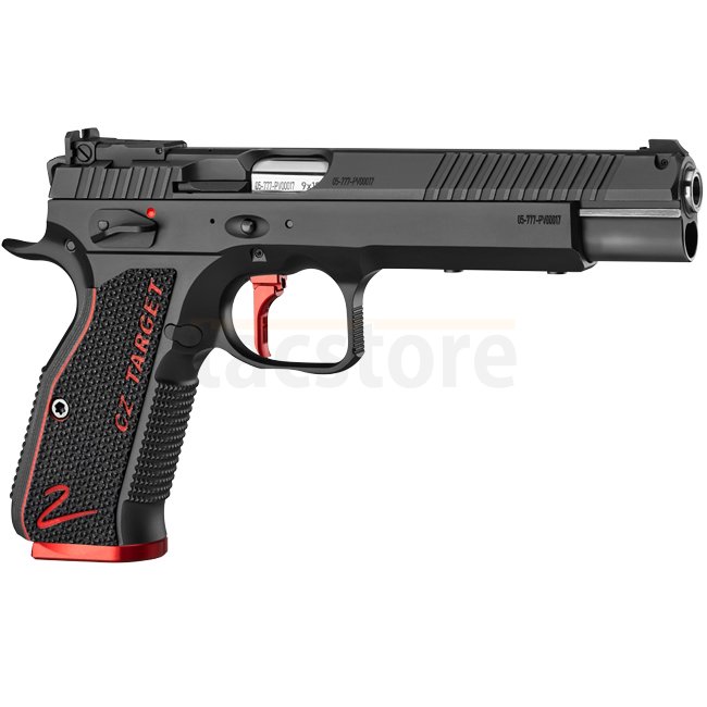 - Abzug: Single-Action (SA) mit fünffach verstellbarem flachem Abzugszüngel und anpassbarem Abzugsgewicht von 5 bis 20 N.