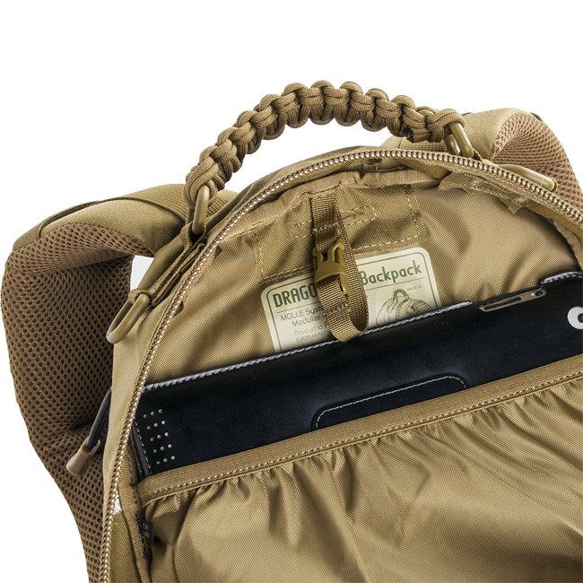 Der Dragon Egg® Mk II ist ein 25+ Liter fassender Rucksack, der sich für kurze Patrouilleneinsätze oder größere EDC-Rucksäcke eignet. Der Rucksack verfügt über drei Reißverschlussfächer. Das Hauptfach hat eine interne Trinkhülle und eine Netztasche. Das Hauptfach hat auch einen zentralen Rohrausgang für einen Trinkschlauch. Die hintere Tasche verfügt über eine gepolsterte Hülle, die zum sicheren Transport von Multiband-Funkgeräten oder einem Laptop mit bis zu 15 Zoll verwendet werden kann. Die Vordertasche des Direct Action® Dragon Egg® verfügt über eine Reißverschluss-Netztasche und einen internen Organizer für Notizblöcke, GPS, Schreibutensilien und andere kleine wichtige Dinge. 2 neu gestaltete Seitentaschen können kleine und flache Gegenstände tragen. Die Taschen sind mit Gummibändern ausgestattet, um sie zu erweitern und eine Standard-Feldflasche oder eine 1-Liter-Nalgene-Wasserflasche aufzunehmen. Der Direct Action® Dragon Egg® hat auch eine weiche, mit Velours gefütterte Reißverschlusstasche für Brillen, Mobiltelefone usw. Der Rucksack hat auch ein Daisy-Chain-Gurtband, das entlang der Naht der Vorderseite verläuft, um Karabiner oder ähnliche Ausrüstung am Rucksack zu befestigen. Das mit MOLLE/PALS kompatible Laserschnittsystem macht den Rucksack nicht nur vollständig modular, sondern behält auch sein unauffälliges Aussehen. Dank der Eiform hat der Rucksack eine geringere Höhe und Breite als andere Rucksäcke mit ähnlichem Fassungsvermögen und ist mit Gürtelkits oder ballistischen Westen bequemer zu tragen. Das Tragesystem basiert auf bequemen Schultergurten und einer inneren Versteifung auf der Rückseite. Der Hüftgurt ist abnehmbar und kann verstaut werden. Hergestellt aus strapazierfähigem 500D Cordura®-Nylongewebe mit wasserabweisender Beschichtung. Combat Vent System®, das innovative Belüftungssystem, das in Rucksäcken verwendet wird und seinen Benutzern mehr Komfort bietet. CVS® besteht aus konturierten Schaumstoffprofilen mit mehreren Luftkanälen, die mit luftigem Mesh kombiniert sind. Es hält den Rucksack vom Rücken fern, was die Luftzirkulation verbessert und Hitzestau und Schwitzen verhindert, während der steife Schaumstoff Komfort und Stabilität gewährleistet.