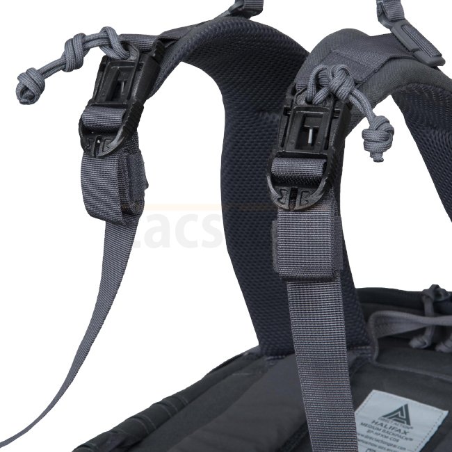 Strapazierfähige Schultergurte verteilen das Gewicht der getragenen Ausrüstung. Zusätzliche Verankerungspunkte am Boden und an den Seiten sowie die verstärkte Konstruktion des gesamten Rucksacks machen ihn „sprungfähig“ für Einsätze in der Luft. Reißverschlüsse an der Vorderseite, die mit denen der SPITFIRE®-Rückwand identisch sind, ermöglichen die Montage aller unserer Rückwände, wodurch der HALIFAX® noch skalierbarer wird.