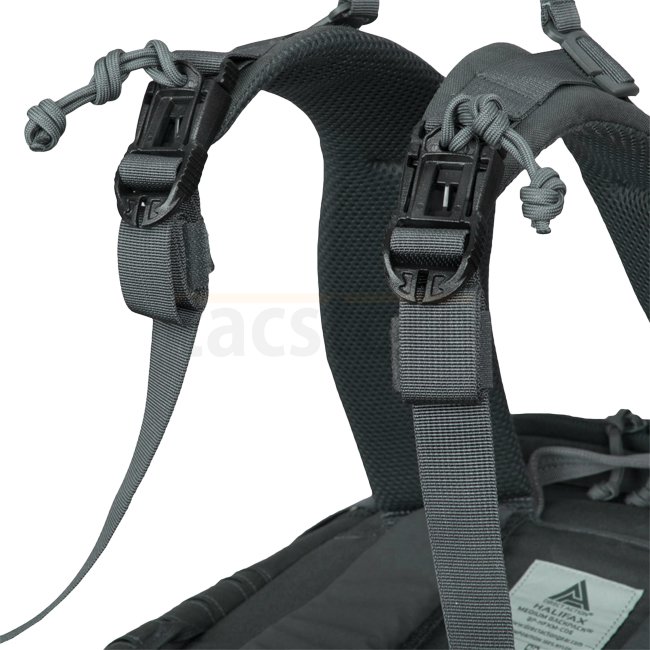 Strapazierfähige Schultergurte verteilen das Gewicht der getragenen Ausrüstung. Zusätzliche Verankerungspunkte am Boden und an den Seiten sowie die verstärkte Konstruktion des gesamten Rucksacks machen ihn „sprungfähig“ für Einsätze in der Luft. Reißverschlüsse an der Vorderseite, die mit denen der SPITFIRE®-Rückwand identisch sind, ermöglichen die Montage aller unserer Rückwände, wodurch der HALIFAX® noch skalierbarer wird.