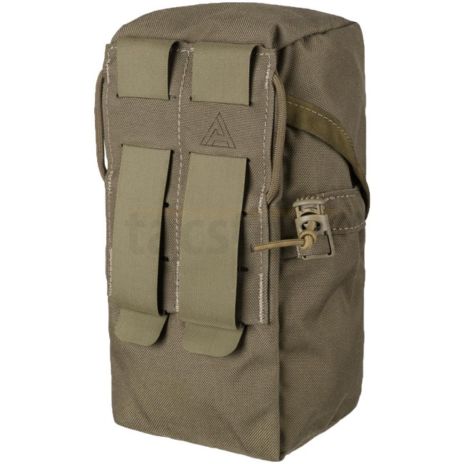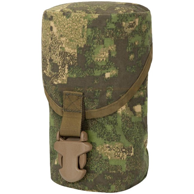 Einfache und leichte Tasche, entworfen, um Wasserbehälter wie die USGI 1 qt Feldflasche oder 1l Nalgene Flasche zu halten. Anpassbar, um kleinere Behälter zu passen. Hergestellt aus Cordura 500D und Laminat. PALS-kompatibel.