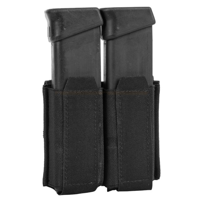 Kompakte schwarze Pistolenmagazintasche aus Cordura® Material, entwickelt um 2 Doppelstapel-Pistolenmagazine zu halten. Verfügt über ein Gürtelbefestigungssystem, mit einem Gewicht von nur 36g.