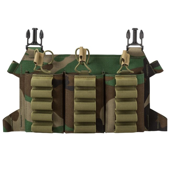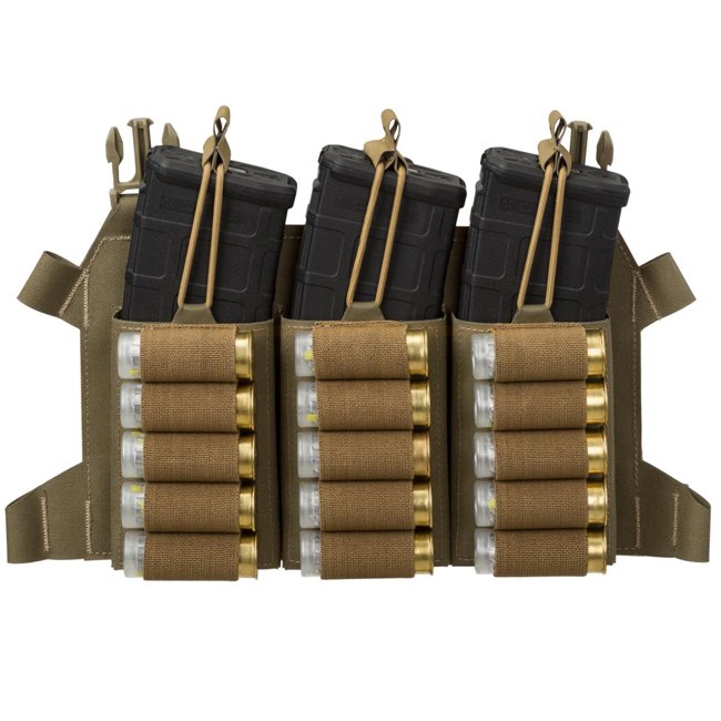 Extrem leicht, multifunktionale skelettierte Klappe, entwickelt um drei M4/AR15 Magazine und bis zu 15 Schrotflintenpatronen zu tragen.