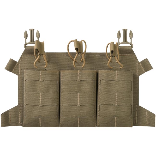 Direct Action Skeletonized Triple 223 Flap - Adaptive Green: Fortgeschrittene skelettierte Klappe für Plattenträger, passt für bis zu drei M4/AR15-Magazine mit sicherem Bungee-Cord-Verschluss oben. Die leichteste modulare Klappe auf dem Markt, lasergeschn