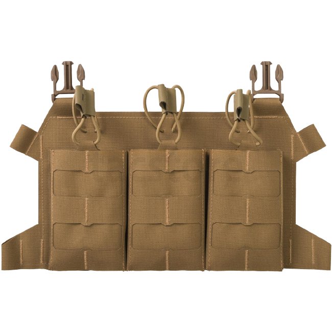 Direct Action Skeletonized Triple 223 Flap - Coyote bietet ein minimalistisches Design für bis zu drei M4/AR15-Magazine. Leicht und lasergeschnitten, ist diese Klappe mit MOLLE/PALS kompatibel und kann leicht an Trägern befestigt werden. Kann auch in ein