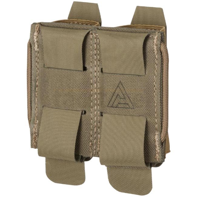 Direct Action Slick Pistol Mag Pouch - PenCott WildWood: Niedrigprofil-Tasche für zwei Doppelreihen-Magazine. Hergestellt aus firmeneigenem Laminat und elastischem Gurtband für eine glatte Oberfläche. Montierbar auf MOLLE/PALS-Plattformen, perfekt um die