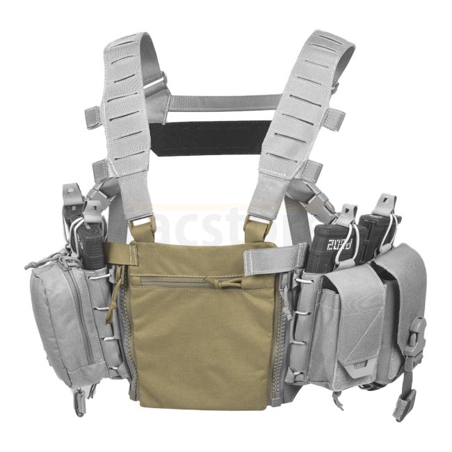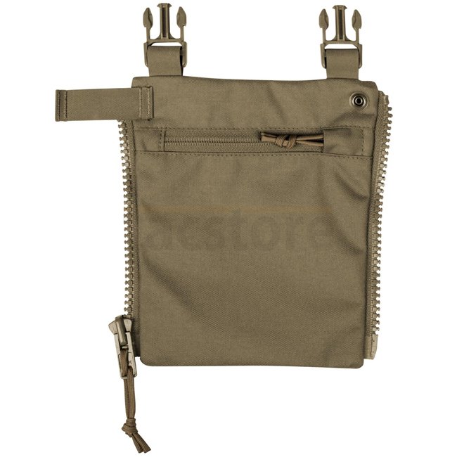 Zusätzliche Frontplatte für HURRICANE und TEMPEST Chest Rigs, die direkt am Frontreißverschluss befestigt werden kann. Dadurch werden die Seiten des Brustkorbs aus dem Weg geräumt, so dass nur eine flache Vorderseite für eine bequeme liegende Schießposition übrig bleibt. Die oberen Schnallen ermöglichen ein schnelles Anbringen der Schultergurte in einer bequemeren Position. Die Platte selbst hat eine flache Fronttasche mit Reißverschluss.