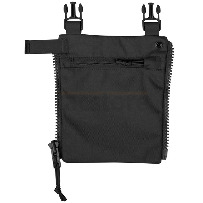 Zusätzliche Frontplatte für HURRICANE und TEMPEST Chest Rigs, die direkt am Frontreißverschluss befestigt werden kann. Dadurch werden die Seiten des Brustkorbs aus dem Weg geräumt, so dass nur eine flache Vorderseite für eine bequeme liegende Schießposition übrig bleibt. Die oberen Schnallen ermöglichen ein schnelles Anbringen der Schultergurte in einer bequemeren Position. Die Platte selbst hat eine flache Fronttasche mit Reißverschluss.