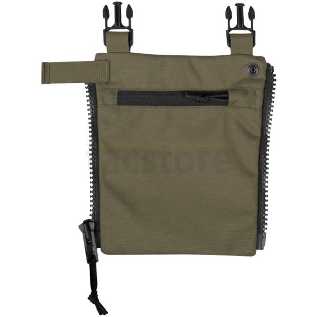 Zusätzliche Frontplatte für HURRICANE und TEMPEST Chest Rigs, die direkt am Frontreißverschluss befestigt werden kann. Dadurch werden die Seiten des Brustkorbs aus dem Weg geräumt, so dass nur eine flache Vorderseite für eine bequeme liegende Schießposition übrig bleibt. Die oberen Schnallen ermöglichen ein schnelles Anbringen der Schultergurte in einer bequemeren Position. Die Platte selbst hat eine flache Fronttasche mit Reißverschluss.
