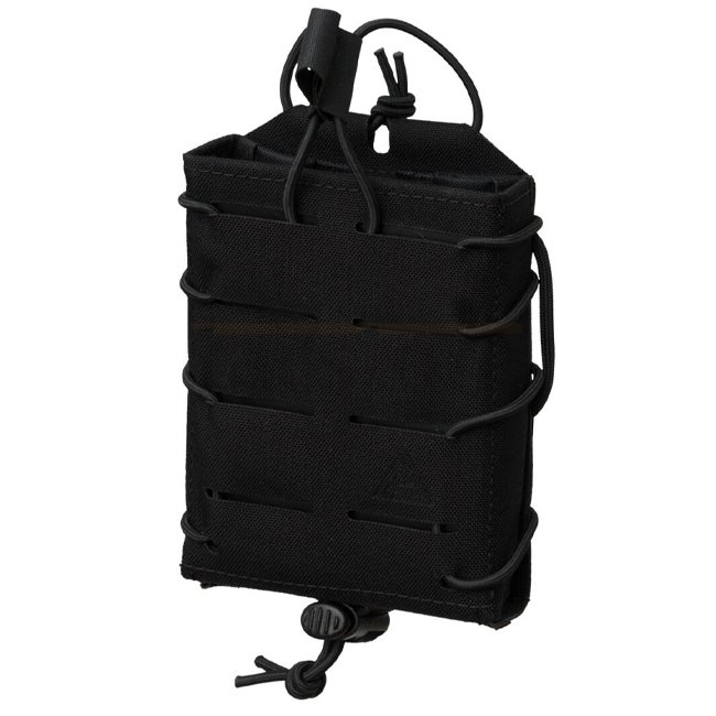 Eine offene Pouch, die für einen schnellen Magazinwechsel konzipiert ist und gleichzeitig einen sicheren Transport des Inhalts gewährleistet. Sie ist für den Transport von .308WIN-Magazinen vorgesehen, einschließlich der breiteren Versionen für das HK-System. Ein innerer Hypalon®-Patch, eine steife Struktur, ein verstellbarer Taschenumfang und elastische Bungee-Seilhalterungen an der Oberseite verhindern, dass Magazine herausfallen. Die Steifigkeit der Tasche ermöglicht ein einfaches Einlegen der Magazine mit einer Hand. Sie ist mit dem MOLLE/PALS-System kompatibel und kann dank speziell entwickelter Paracord-Schlaufen auch an jedem Waffengürtel bis zu einer Breite von 45 mm befestigt werden. Das lasergeschnittene modulare System, das mit MOLLE/PALS kompatibel ist, befindet sich auf der Vorderseite der Tasche und ermöglicht das Stapeln der Taschen übereinander.