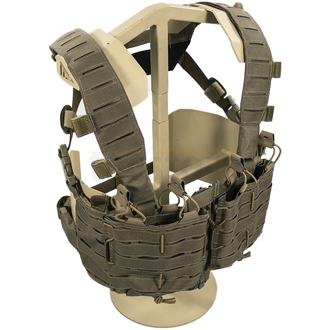 Direct Action Tempest Chest Rig in Adaptive Green Farbe mit vielseitigem Design. Ideal zum Tragen von 8x AR-15, 4x AK47 oder 4x SR Typ Magazinen. Hergestellt aus strapazierfähigem Cordura-Material, Maße 15,2cm x 45,7cm und Gewicht 530g. Perfekt für taktis