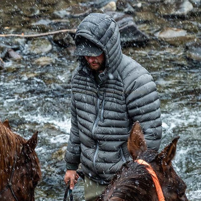 Der McCall Hoody verwendet 850er Gänsedaunen mit Granger-DWR-Behandlung für außergewöhnliche Wärme bei geringem Volumen. Diese Isolierung sorgt für optimale Wärmerückhaltung bei kalten Temperaturen ohne Einschränkung der Bewegungsfreiheit.