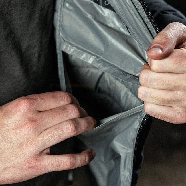 Die Außenschicht besteht aus 20D DWR-imprägniertem Gewebe, das vor Feuchtigkeit schützt und gleichzeitig atmungsaktiv bleibt. Seitenteile mit Graphenfüllung verbessern die Wärmeverteilung und sorgen dafür, dass die Jacke auch bei Bewegung ihre Form und Isolierleistung behält.