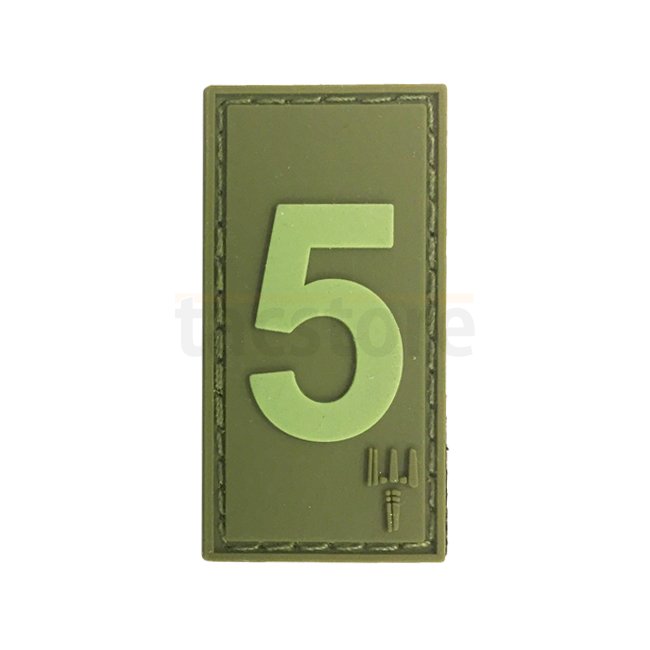 Pitchfork Number 5 Patch - Olive, Velcro backed, 50 x 25mm