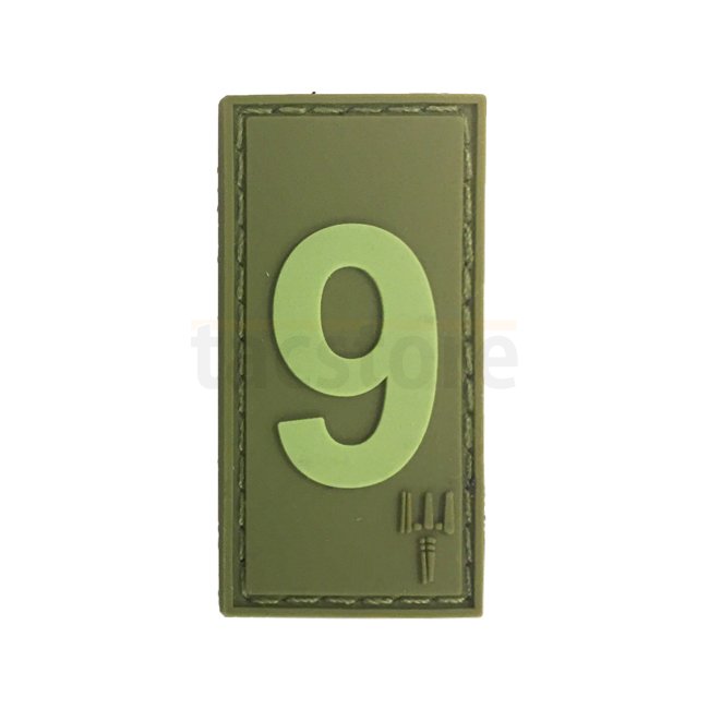Pitchfork Number 9 Patch - Olive, Velcro backed, 50 x 25mm dimensions.