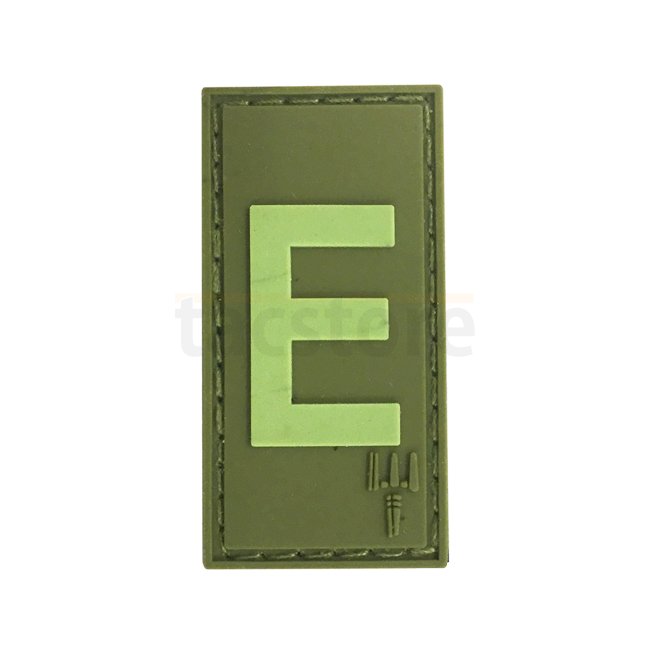 Pitchfork Letter E Patch - Olive. Velcro backed. Dimensions: 50 x 25mm.