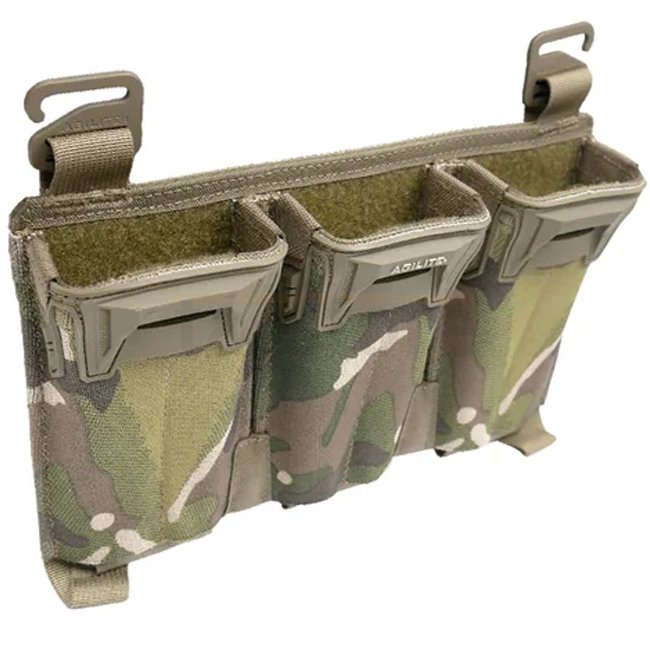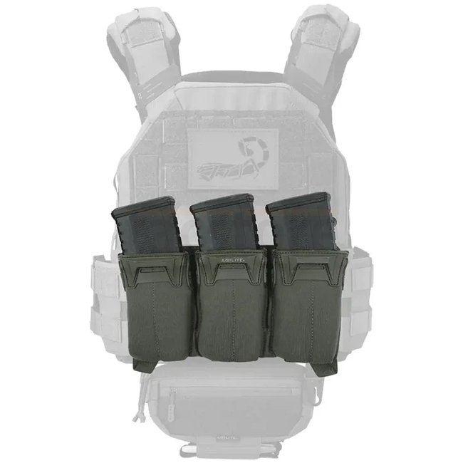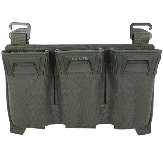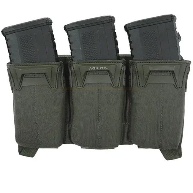 Agilite Pincer Placard Triple Mag Pouch - Ranger Green. Patented funneled magwell design holds 3 rifle magazines or 6 pistol mags.