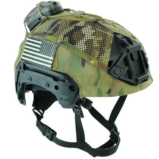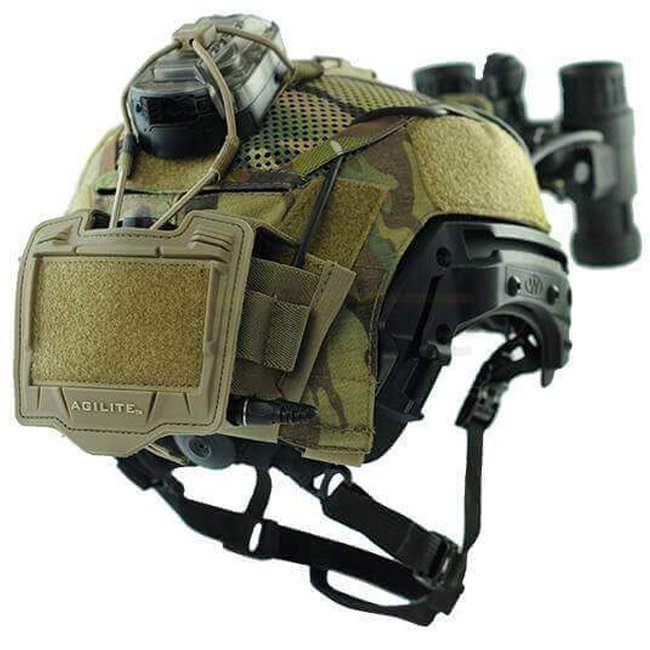 Agilite Team Wendy Exfil Carbon Helmet Cover offers precise fit with rear loops for AA and CR123 NVG Batteries. Features laser-engraved polymer bungee channels, Next generation bungee retention, cable management channels, and rock-solid accessories platfo