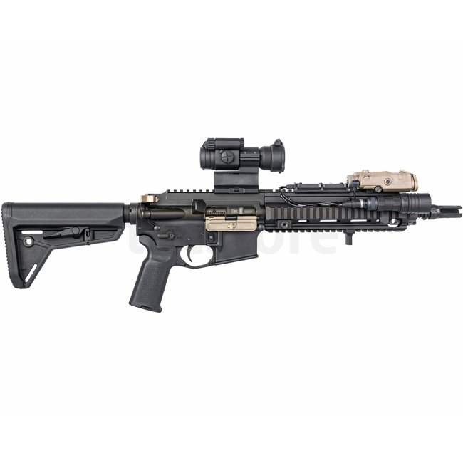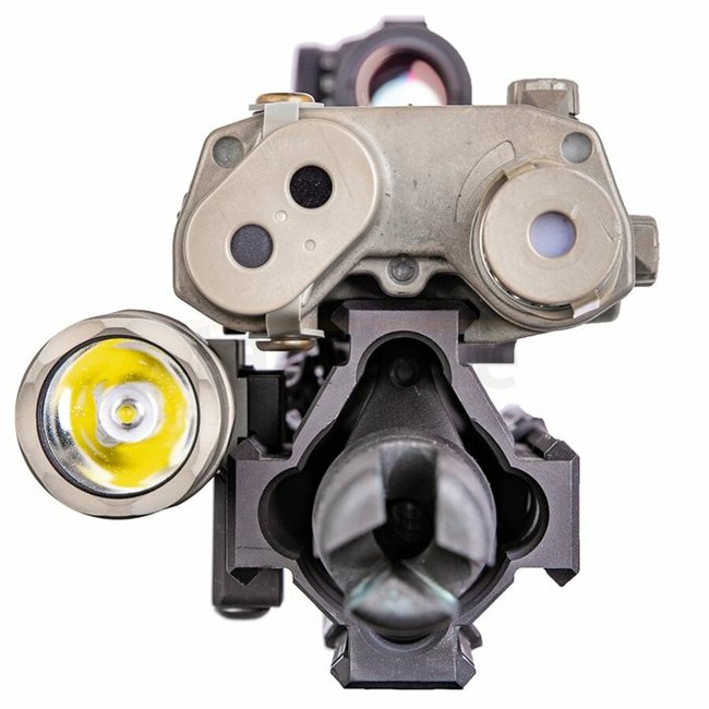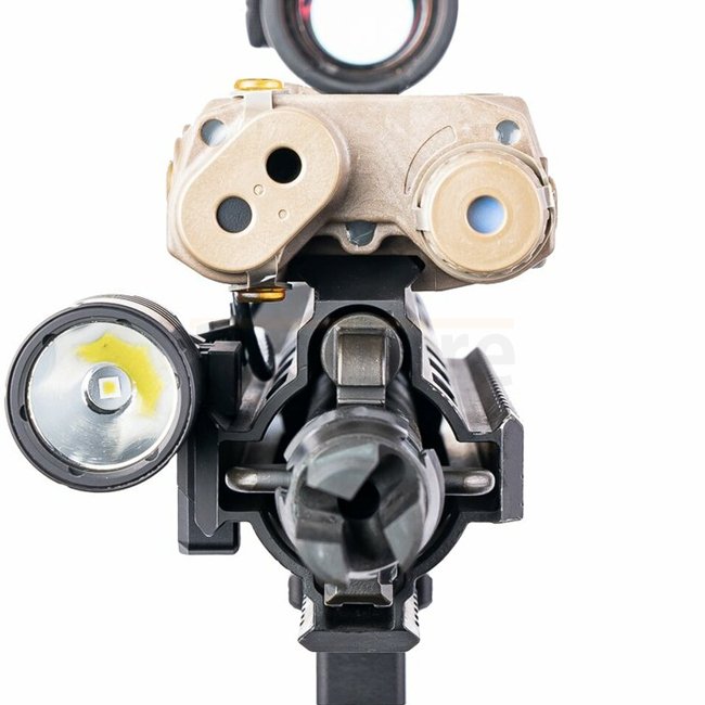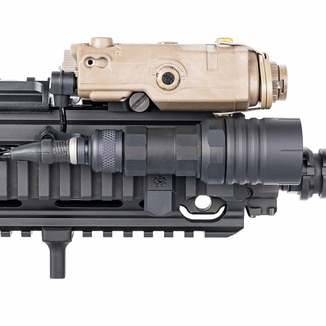 The Patent Pending Arisaka Side Scout Mount (SSM) is designed for use with Surefire Scout Lights, the Modlite PLH and OKW weapon lights, the Arisaka 300, 600 and 18650 Series, and the Streamlight Protac Rail Mount lights. It replaces the stock Picatinny rail adapter with a low profile mount that tucks the light underneath either side of the ATPIAL laser/illuminator series, including the ATPIAL-C, AN/PEQ15, and LA-5/PEQ. It will also allow the light to clear the QD lever on the Steiner DBAL I2, A3, and D2.