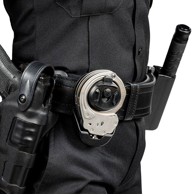 The Exo-S Case is a sleek, lightweight, rapid-access carrier, custom-designed specifically for ASP Sentry Cuffs. It gets its name from a lightweight, exoskeleton-like design that adds virtually no bulk, and has no covers, flaps, or straps to get in the way. Also, unlike any other handcuff case, the Exo-S holds the handcuffs in a proper, pre-loaded ''ready'' configuration, preventing the bows from being moved out of position while carrying. To deploy handcuffs, simply release the slide lock and remove the restraints. To replace, just seat the bottom of the cuffs into the rubber-cushioned/noise-dampened recess, and re-engage the slide lock. Each case incorporates an integral back pocket for an auxiliary handcuff key (Key is included). Belt loop and MOLLE compatible.