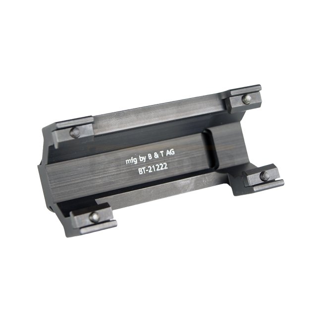 Enhance your shooting experience with the B&T HK MP5 Low Mount, a durable and sleek accessory made from high-quality aluminum. Easy to install and lightweight at only 95g, it offers a max height of 30.7mm, width of 40mm, and top rail length of 84mm. Finis