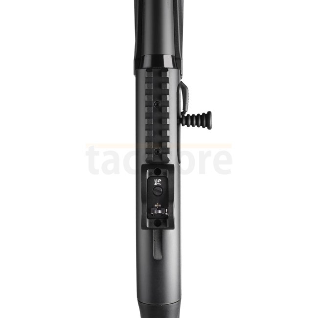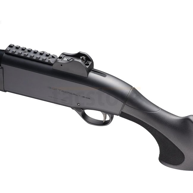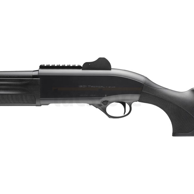 The 1301 Tactical can be easily tailored to the shooter's needs. The stock's length is adjustable using the provided spacers, allowing for a natural aiming posture. Additionally, the receiver features a Picatinny MIL-STD-1913 rail, facilitating the attachment of tactical accessories without additional modifications.