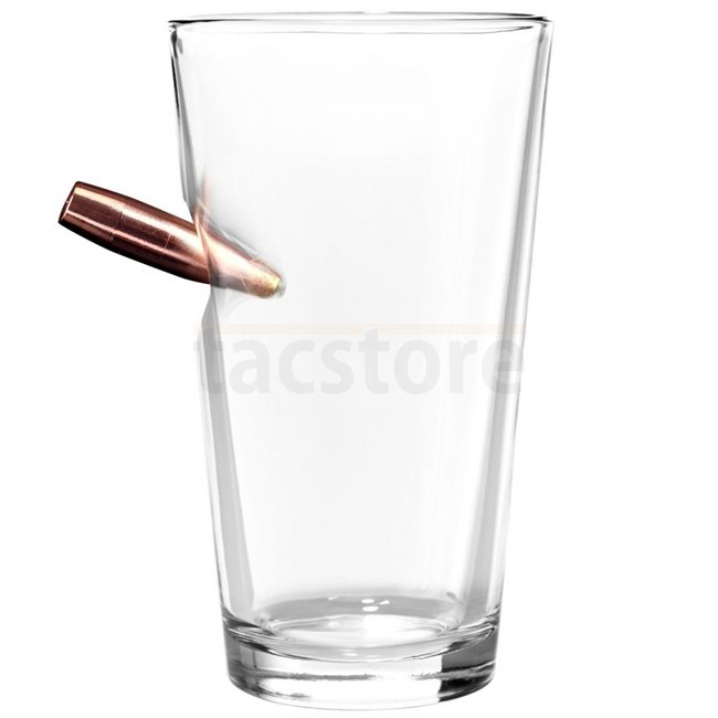 Caliber Gourmet Last Man Standing Pint Glass: Unique, rebellious beer glass with a hand sculpted 50 caliber faux-bullet, perfect for beer enthusiasts, hunters, and veterans!